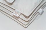 Najnowsza Kolekcja Antyalergiczna "PLATINIUM" zadowoli nawet najbardziej wymagających Klientów. Wypełnienie – Biały Puch Gęsi 100% – stanowi najlepszy surowiec produktów pościelowych z wypełnieniem naturalnym. Jest on gwarantem czystości, higieny, komfortu i luksusu, co nadaje produktom z tym wypełnieniem niezwykłego prestiżu. Puch gęsi charakteryzuje się wyjątkowymi właściwościami termicznymi, odpowiednio wyprany i zabezpieczony jest ANTYALERGICZNY, zapewnia przyjemną dla organizmu naturalność i delikatność. Puch gęsi wypełniający kołdry i poduszki pobiera z otoczenia powietrze, a następnie utrzymuje je w pustych obszarach swoich promieni – zapewnia 100% odpowiedniej cyrkulacji powietrza dla organizmu ludzkiego, jakże istotnego podczas snu. Kołdra okrywająca ciało ludzkie gwarantuje ponadprzeciętną ochronę cieplną, nie powodując przy tym przegrzania organizmu. Kasetonowa konstrukcja kołder zapobiega powstawaniu zimnych stref, ponieważ wypełnienie pozostaje równomiernie rozłożone na całej powierzchni. Natomiast poduszki umożliwiają odpowiedni opływ powietrza wokół głowy, dzięki czemu budzimy się wypoczęci i odprężeni. Na uwagę zasługuje również najwyższej jakości sterylne poszycie użyte w najnowszej kolekcji, które stanowi jedwabiście gładka, higieniczna i delikatna w dotyku bawełna w kolorze optyczna biel nasączona wyciągiem z ALOESU. Zastosowany materiał poszycia – 100% bawełna Soft Finish / Pre Shrinked 400 TC – zapewnia doskonały termoobieg powietrza, dzięki czemu użyte wypełnienie zachowuje wszystkie swoje właściwości przez bardzo długi czas oraz nie powoduje zbierania wilgoci.