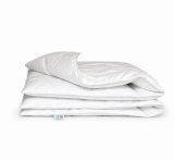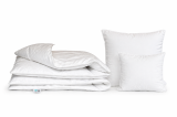 Wypełnienie – Biały Puch Gęsi, odpowiednio przygotowany zgodnie z Normami Europejskimi, Certyfikowany wg Oeko-Tex Standard 100. Dzięki zastosowaniu tak wysokiej jakości puchu, kołdry są wyjątkowo ciepłe nawet przy niskiej wadze wypełnienia. Puch gęsi charakteryzuje się wyjątkowymi właściwościami termicznymi, higroskopijnymi (absorbuje wilgoć), zapewnia przyjemną dla organizmu naturalność i delikatność. Puch Gęsi wypełniający kołdry i poduszki pobiera z otoczenia powietrze, a następnie utrzymuje je w pustych obszarach swoich promieni – zapewnia 100% odpowiedniej cyrkulacji powietrza dla organizmu ludzkiego, jakże istotnego podczas snu. Kołdra okrywająca ciało ludzkie gwarantuje ponadprzeciętną ochronę cieplną, nie powodując przy tym przegrzania organizmu. Kasetonowa konstrukcja kołder zapobiega powstawaniu zimnych stref ponieważ wypełnienie pozostaje równomiernie rozłożone na całej powierzchni. Natomiast poduszki umożliwiają odpowiedni opływ powietrza wokół głowy, dzięki czemu budzimy się wypoczęci i odprężeni. Na uwagę zasługuje również najwyższej jakości poszycie użyte w najnowszej kolekcji, które stanowi jedwabiście gładka, higieniczna i delikatna w dotyku bawełna w kolorze optycznej bieli o najwyższej możliwej gramaturze 400 (TC400FH). Zastosowany materiał poszycia – 100% bawełna wygładzana olejkiem aloesowym – zapewnia doskonały termoobieg powietrza, dzięki czemu użyte wypełnienie zachowuje wszystkie swoje właściwości przez bardzo długi czas.