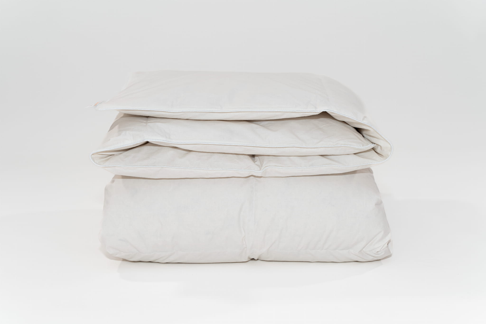 Wypełnienie – Biały Puch Gęsi, odpowiednio przygotowany zgodnie z Normami Europejskimi, Certyfikowany wg Oeko-Tex Standard 100. Dzięki zastosowaniu tak wysokiej jakości puchu, kołdry są wyjątkowo ciepłe nawet przy niskiej wadze wypełnienia. Puch gęsi charakteryzuje się wyjątkowymi właściwościami termicznymi, higroskopijnymi (absorbuje wilgoć), zapewnia przyjemną dla organizmu naturalność i delikatność. Puch Gęsi wypełniający kołdry i poduszki pobiera z otoczenia powietrze, a następnie utrzymuje je w pustych obszarach swoich promieni – zapewnia 100% odpowiedniej cyrkulacji powietrza dla organizmu ludzkiego, jakże istotnej podczas snu. Kołdra okrywająca ciało gwarantuje ponadprzeciętną ochronę cieplną, nie powodując przy tym przegrzania organizmu. Kasetonowa konstrukcja kołder zapobiega powstawaniu zimnych stref ponieważ wypełnienie pozostaje równomiernie rozłożone na całej powierzchni. Na uwagę zasługuje również najwyższej jakości poszycie użyte w najnowszej kolekcji, które stanowi jedwabiście gładka, higieniczna i delikatna w dotyku bawełna w kolorze optycznej bieli o najwyższej możliwej gramaturze 400 (TC400FH). Zastosowany materiał poszycia – 100% bawełna wygładzana olejkiem aloesowym – zapewnia doskonały termoobieg powietrza, dzięki czemu użyte wypełnienie zachowuje wszystkie swoje właściwości przez bardzo długi czas.