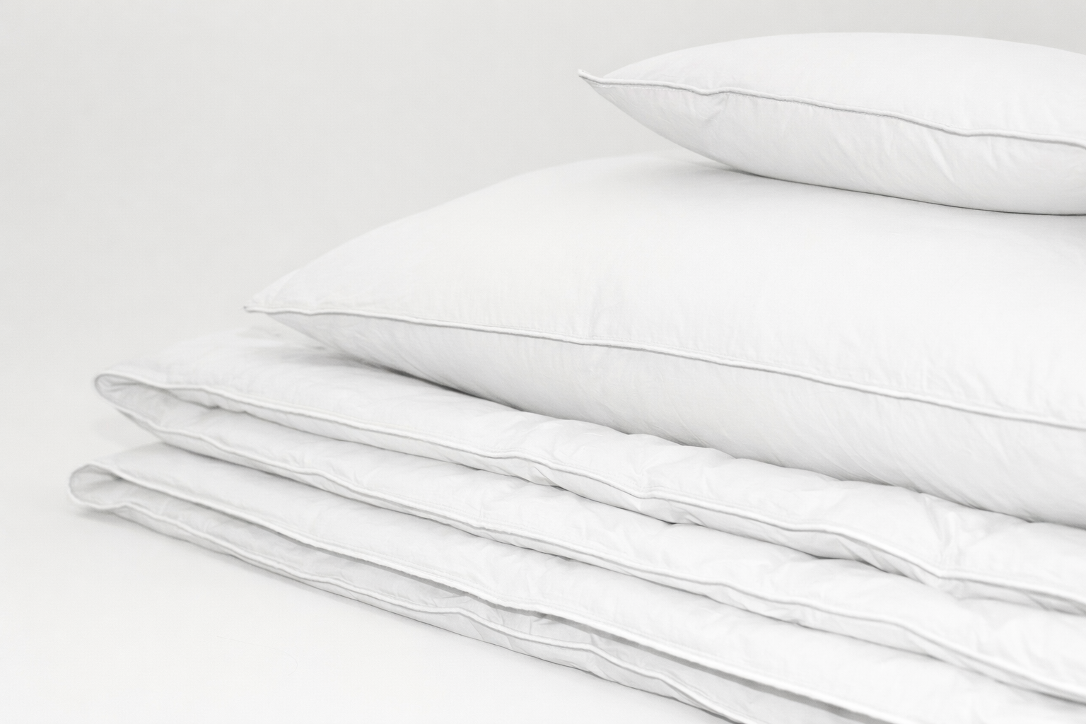 Poszycie: 100% bawełna, do wyboru : w kolorze optycznej bieli lub w standardowym różowym wsypie