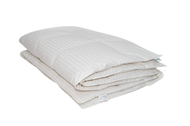 Wypełnienie – Biały Puch Gęsi, odpowiednio przygotowany zgodnie z Normami Europejskimi, Certyfikowany wg Oeko-Tex Standard 100. Dzięki zastosowaniu tak wysokiej jakości puchu, kołdry są wyjątkowo ciepłe nawet przy niskiej wadze wypełnienia. Puch gęsi charakteryzuje się wyjątkowymi właściwościami termicznymi, higroskopijnymi (absorbuje wilgoć), zapewnia przyjemną dla organizmu naturalność i delikatność. Puch Gęsi wypełniający kołdry i poduszki pobiera z otoczenia powietrze, a następnie utrzymuje je w pustych obszarach swoich promieni – zapewnia 100% odpowiedniej cyrkulacji powietrza dla organizmu ludzkiego, jakże istotnego podczas snu. Kołdra okrywająca ciało ludzkie gwarantuje ponadprzeciętną ochronę cieplną, nie powodując przy tym przegrzania organizmu. Kasetonowa konstrukcja kołder zapobiega powstawaniu zimnych stref, ponieważ wypełnienie pozostaje równomiernie rozłożone na całej powierzchni. Natomiast poduszki umożliwiają odpowiedni opływ powietrza wokół głowy, dzięki czemu budzimy się wypoczęci i odprężeni. Poszycie użyte w najnowszej kolekcji, które stanowi jedwabiście gładka, higieniczna i delikatna w dotyku bawełna z delikatnymi paskami w kolorze bieli. Zastosowany materiał poszycia 100% bawełna - zapewnia doskonały termoobieg powietrza, dzięki czemu użyte wypełnienie zachowuje wszystkie swoje właściwości przez bardzo długi czas.