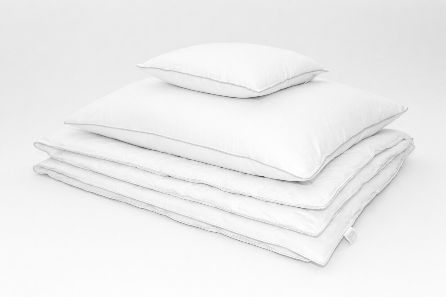 Poszycie: 100% bawełna, do wyboru : w kolorze optycznej bieli lub w standardowym różowym wsypie